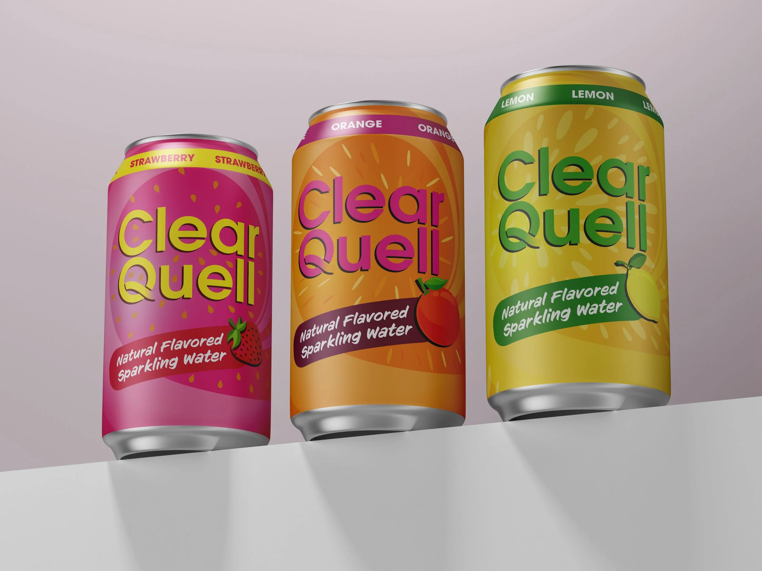 CLEAR QUELL is a sparkling water brand with natural flavors that emphasizes purity, clarity, and authenticity. In its packaging design, the natural textures of the fruits in each flavor are used to visually convey the taste inside the can. Bright, summer-inspired colors bring energy and freshness, creating a lively yet elegant appearance that reflects the essence and character of Clear Quell.